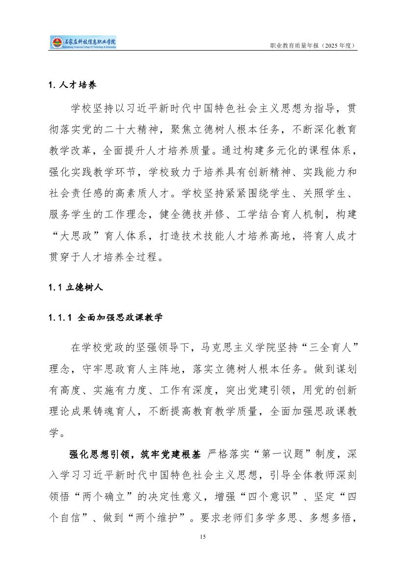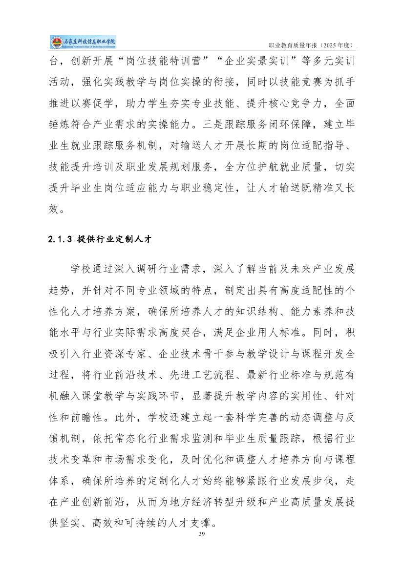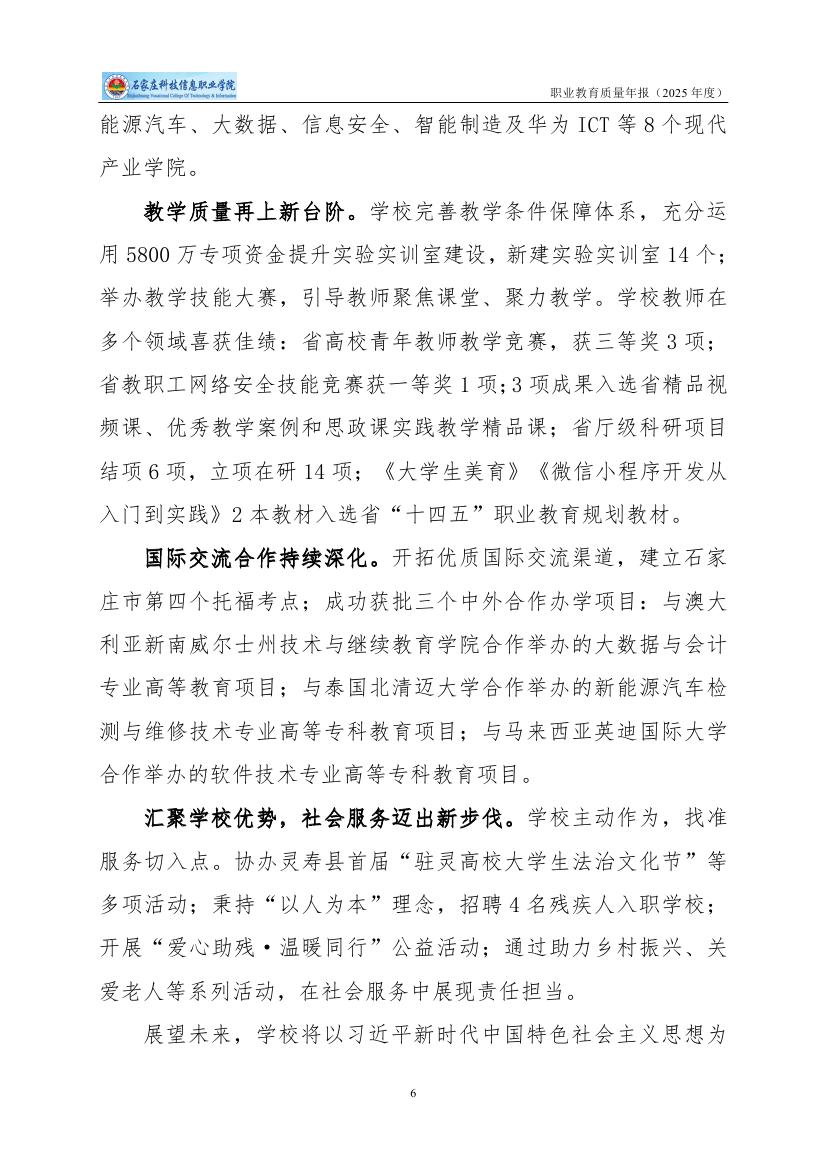 石家庄科技信息职业学院高等职业教育质量年度报告(2025)